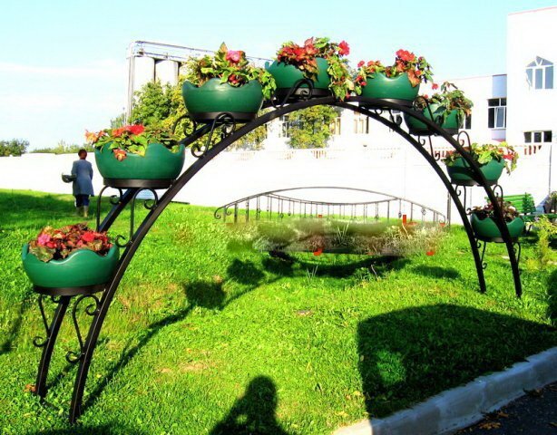 Комплектация: конструкция металлической арки, вазон для цветов с запасом воды, основание - рама металлическая.