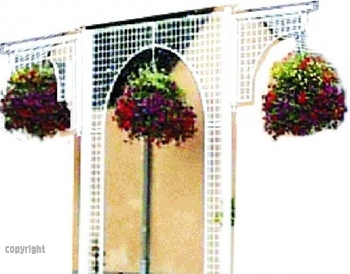 Комплектация: конструкция металлической арки с двумя полуарками, металлическая сетка, вазон для цветов с запасом воды.