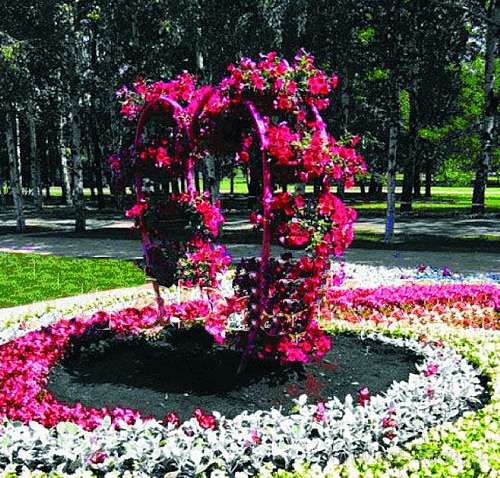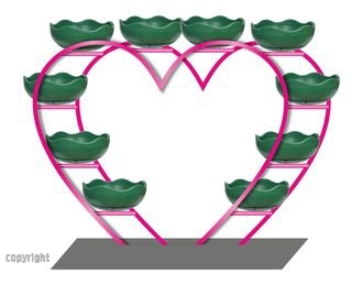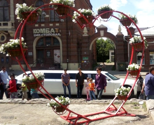 Цветочница представляет собой двойную металлоконструкцию арки в виде сердца с уличными кашпо 500. Фотографии цветочной арки в виде сердца можно увидеть у нас на сайте с разных ракурсов. Длина от 2400 мм до 3400 мм. Высота от 2500мм до 2800мм. Высоту, ширину, цвет на выбор заказчика. Оригинальное место для фотозоны можно обустроить возле арки в виде сердца. Можно укомплектовать от 11 до 15 штук уличных кашпо (вазонами, термочаши) с двойными стенками для запаса воды  и сокращения периодичности полива, что делает уход за растениями минимальным.
