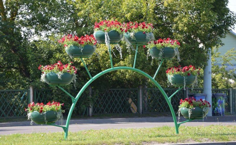 Комплектация: конструкция металлической арки, вазон для цветов с запасом воды, основание под анкерное соединение.
