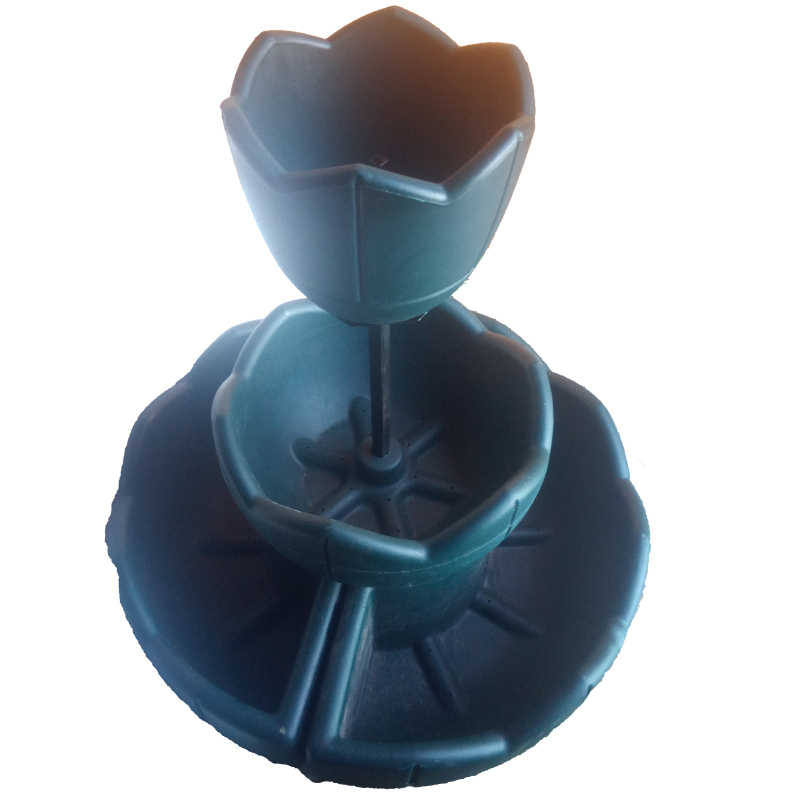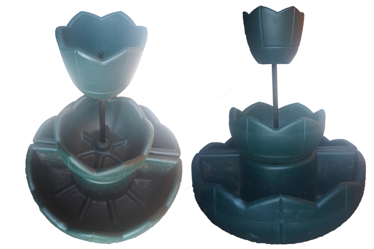 Представляет собой конструкцию в виде фонтана с вазонами для цветов с запасом воды, размещенных на стойке