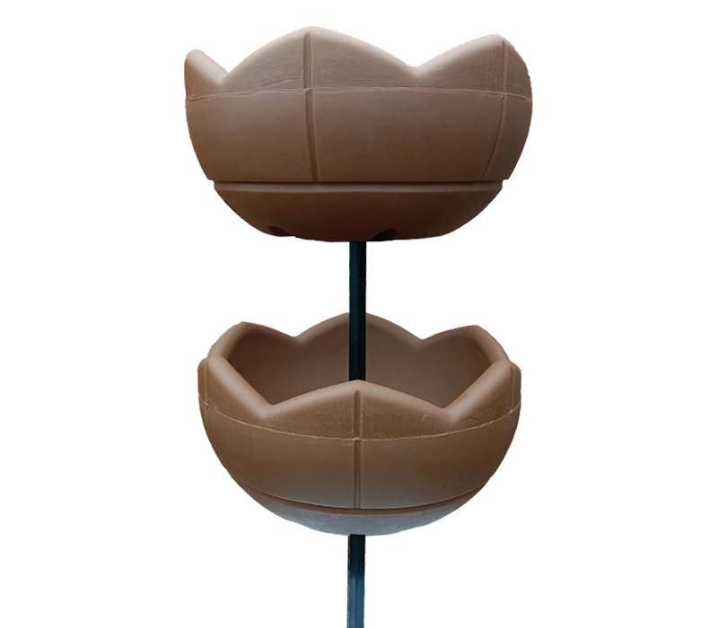 Вазон изготовлен из сертифицированного полиэтилена, выдерживает температуры от -60 до +60. Стойка изготовлена их стального профиля и стального прута.