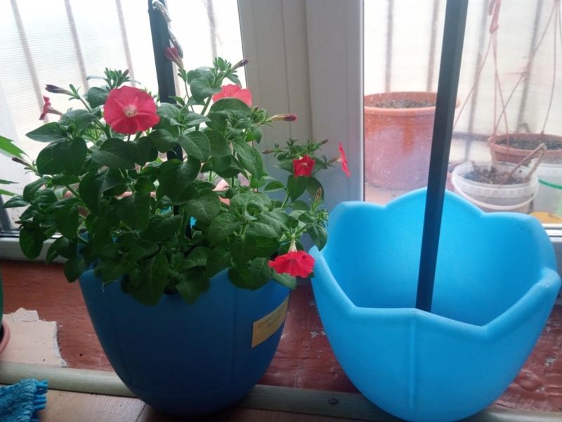 Вазон изготовлен из сертифицированного полиэтилена, выдерживает температуры от -60 до +60. Подвес изготовлен их стального профиля.
