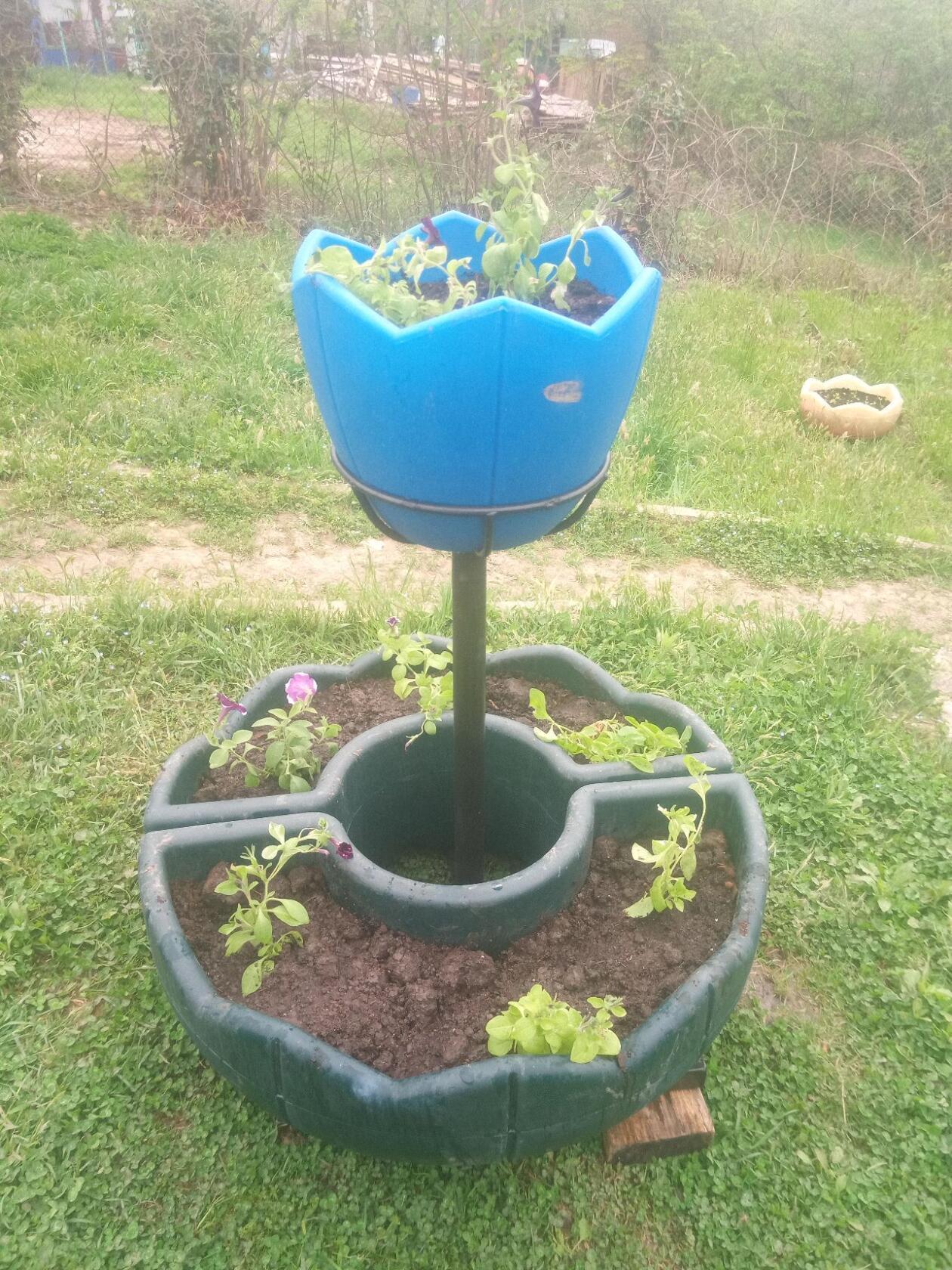 Вазон изготовлен из сертифицированного полиэтилена, выдерживает температуры от -60 до +60. Стойка изготовлена их стального профиля и стального прута.
