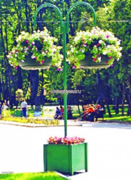 Комплектация цветника: конструкция цветочницы, вазон для цветов с запасом воды, основание под анкерное соединение.