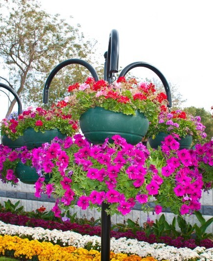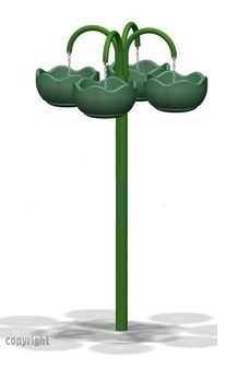 конструкция цветочницы, 4 консоли, вазоны для цветов с запасом воды, в основании металлическая рама или анкера.