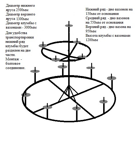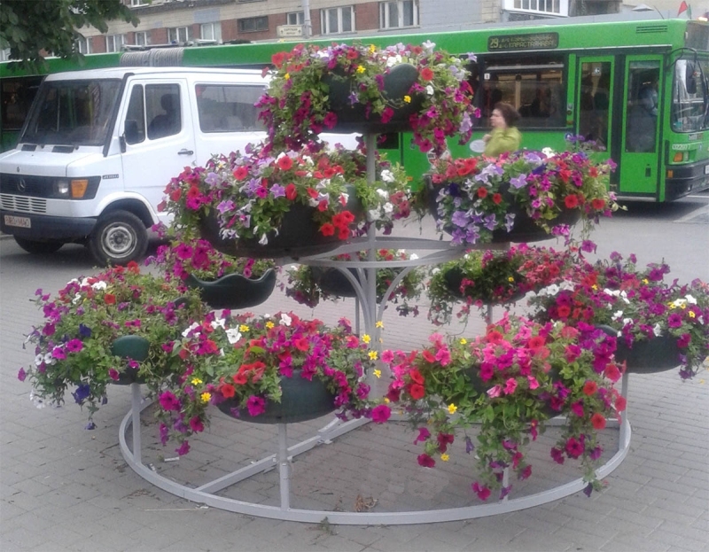 Конструкция цветника, вазоны для цветов с запасом воды.