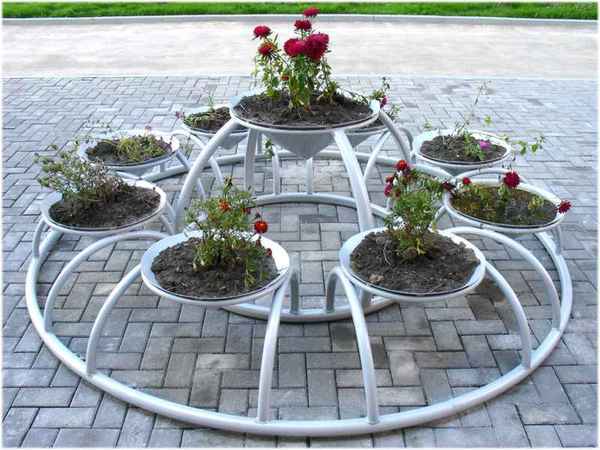 Конструкция цветника, вазоны для цветов с запасом воды.