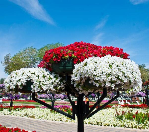 Цветочница Калина представляет конструкцию стойки с прикрепленными к ней консолями изогнутыми под углом, расположенными на двух уровнях с вазонами для цветов с запасом воды.