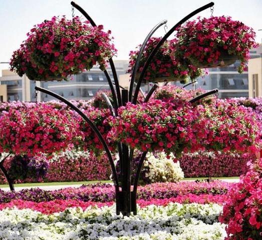 Конструкция цветника, 10 (16) консолей (5 (8) вверху, 5 (8) внизу со смещением относительно центральной стойки и друг друга), вазон для цветов с запасом воды, основание - под анкерное соединение