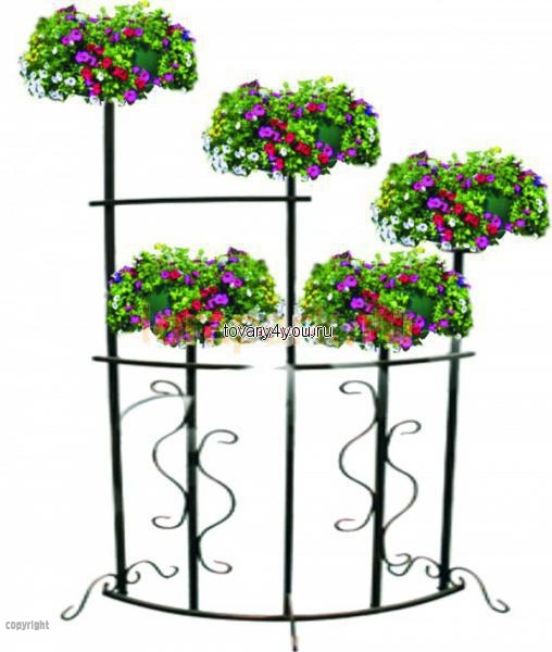 Комплектация цветника: конструкция цветочницы, вазон для цветов с запасом воды, в основании металлическая рама.