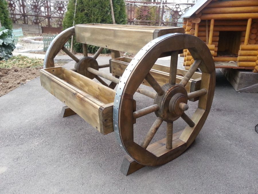 Конструкция цветника в виде тележки с колесами, 3 яруса