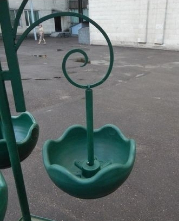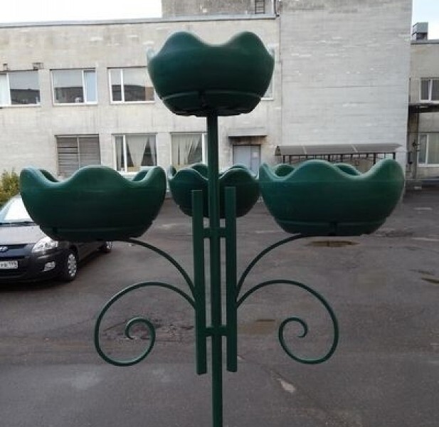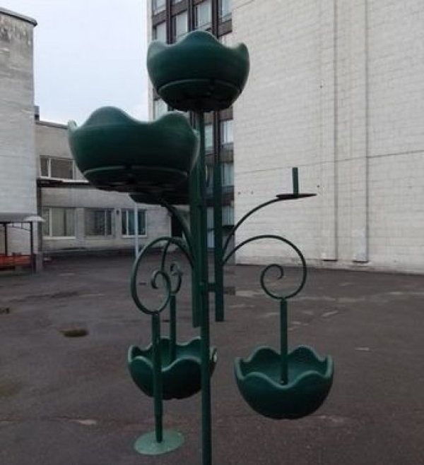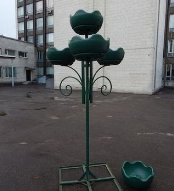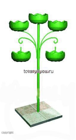 Комплектация: Конструкция цветника, 4 консоли расположены по бокам от центральной стойки, вазон для цветов с запасом воды, основание под анкерное соединение.