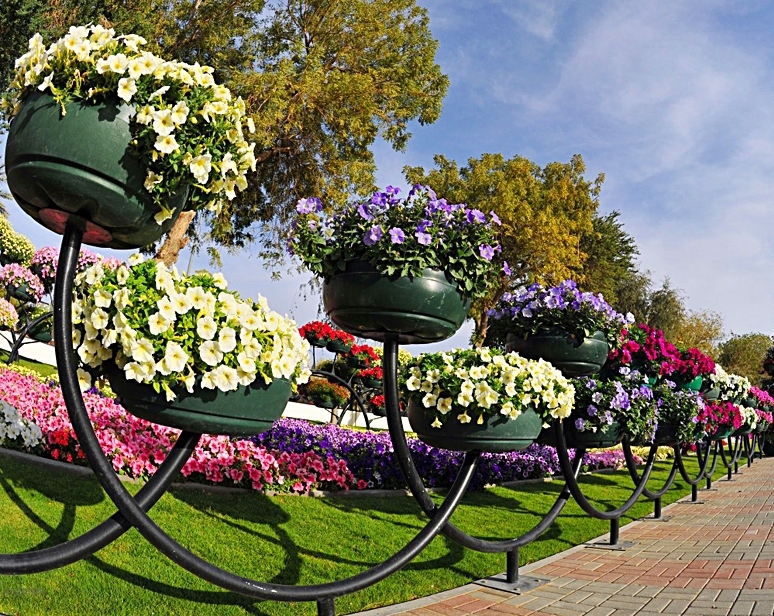 Комплектация цветника: конструкция цветочницы, вазон для цветов с запасом воды, в основании металлическая рама.