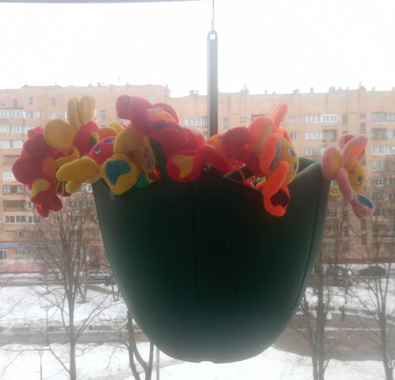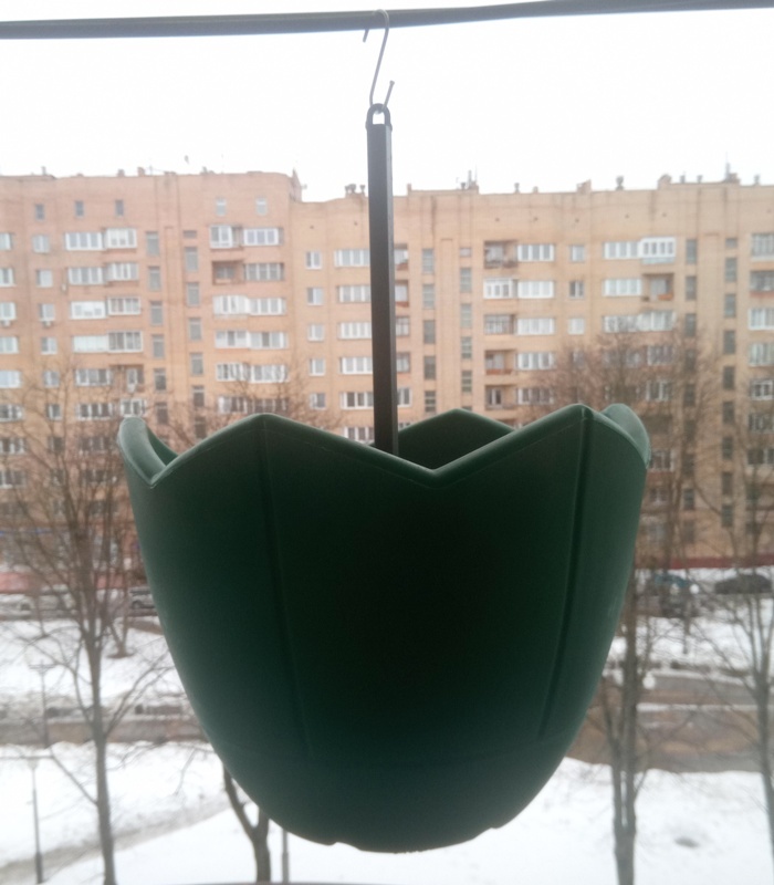 Вазон изготовлен из сертифицированного полиэтилена, выдерживает температуры от -60 до +60. Подвес изготовлен их стального профиля.